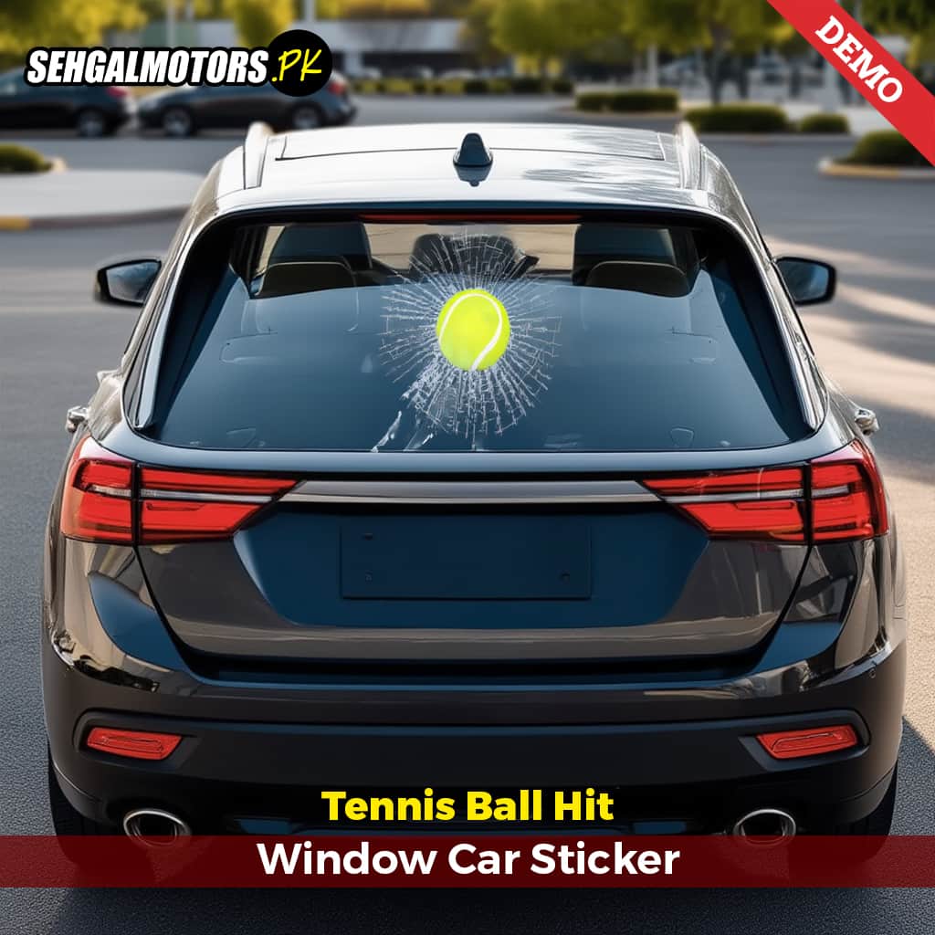 A Lot of Fun This unique 3D tennis ball hit Car sticker is only available from Sehgal Motors. It looks like there is a tennis ball that's been smashed into your window, and it's a great attention catcher. It is excellent for the tennis fan or anyone who drives a Car and appreciates a good vibe.