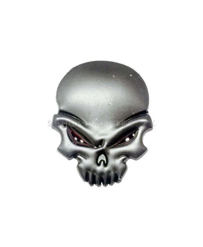 The grim skull face takes this high-quality 3D metallic sharp finish skull sticker on the road outdoors of any vehicles, it shows an excellent artistic style.